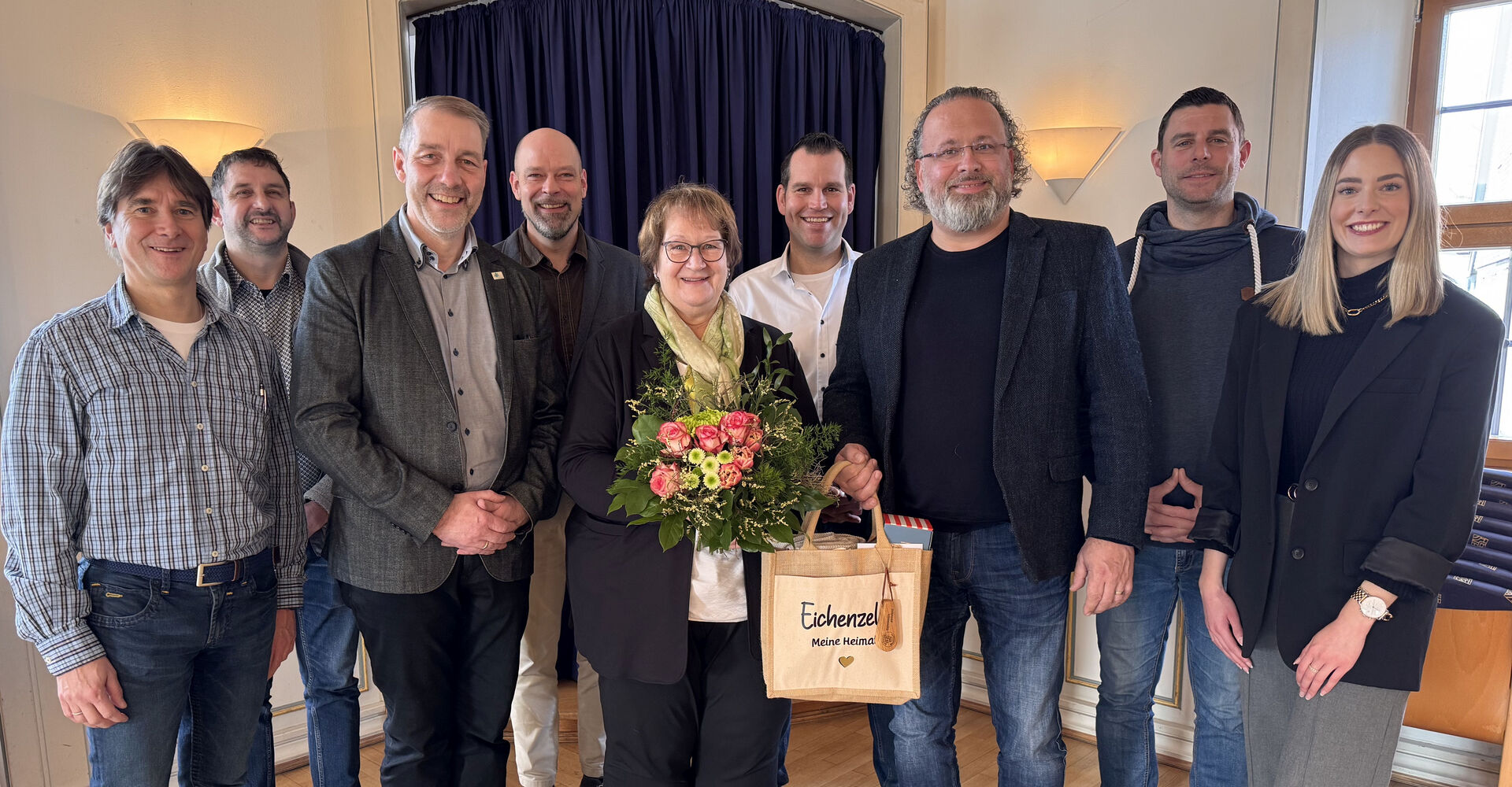 Nach 46 Jahren im Dienst der Gemeinde Eichenzell wurde Martina Stidronski am 31.01.2025 in einer kleinen Feierstunde im Kultursaal des Eichenzeller Schlösschens von Bürgermeister Johannes Rothmund, Simon Herr, dem Leiter der Finanzabteilung, sowie Thomas Gernhardt, dem Vorsitzenden des Personalrats, im Beisein weiterer Kolleginnen und Kollegen in den wohlverdienten Ruhestand verabschiedet.