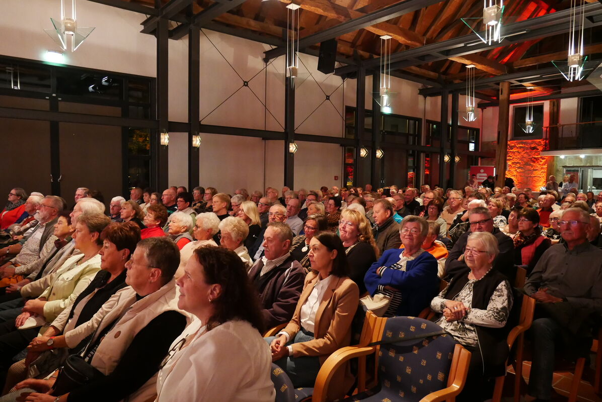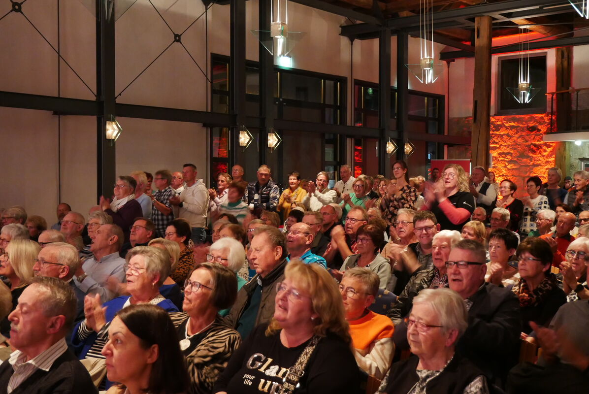 Frank Unger, Namensgeber und Musiker der 7 Rhöner Franken, führte mit Leichtigkeit und viel Humor durch das Programm. Ein rundum gelungener Abend, bei dem das Publikum bis zum Schluss mitsang, mitklatschte und schunkelte.