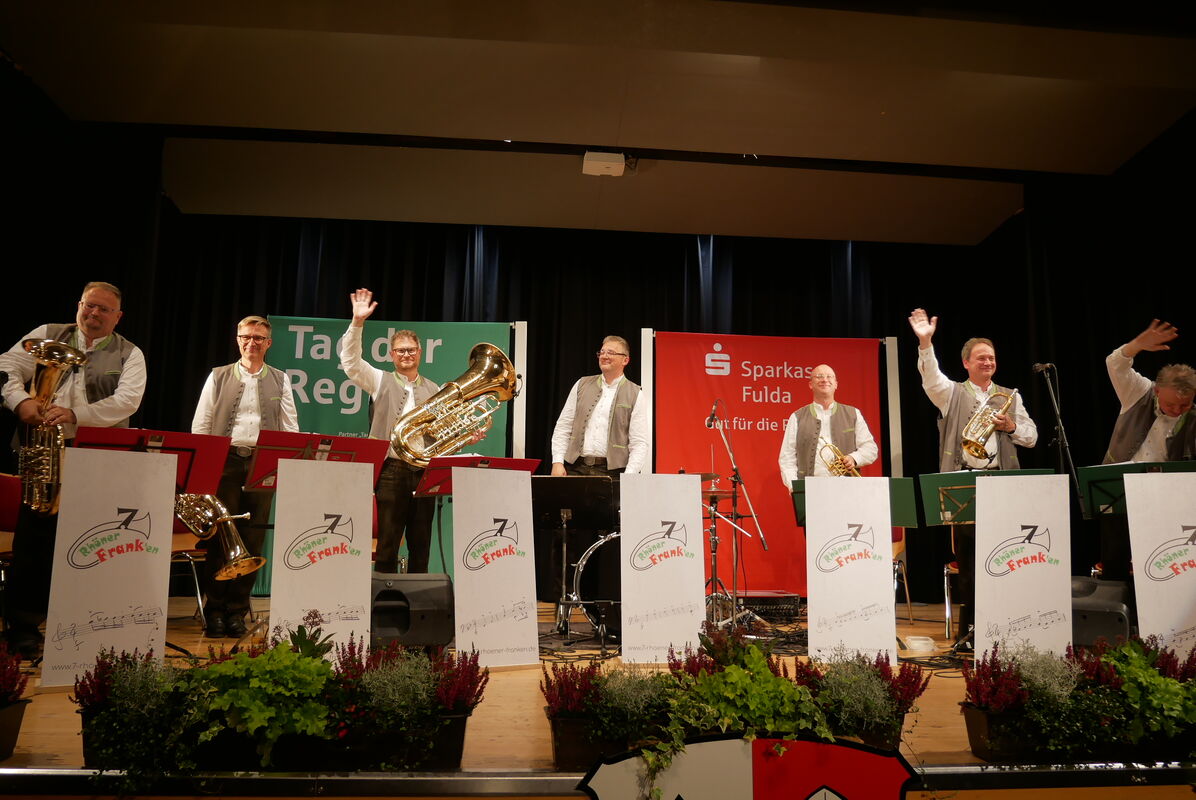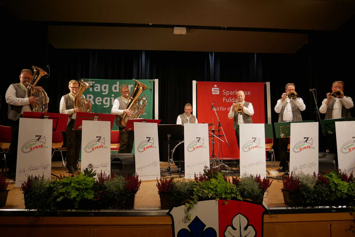 Mit einem fulminanten Konzert der 7 Rhöner Franken eröffnete die Gemeinde Eichenzell am vergangenen Freitag, 26. September 2025, den Tag der Regionen 2025 in der Kulturscheune Eichenzell. Die sieben erstklassigen Musiker, die aus Eichenzell und der Region stammen, rissen das Publikum vom ersten Titel an mit. Mit ihrem Repertoire, dass sowohl aus traditioneller Blasmusik, als auch aus neuen, frischen Arragements bestand, konnten die Finalisten des Grand-Prix der Volksmusik 2023 die ganze Bandbreite ihres musikalischen Könnens zeigen. Besonders beeindruckten die anspruchsvollen Kompositionen, die aus der Feder des Mitspielers Edi Sagert stammen.
