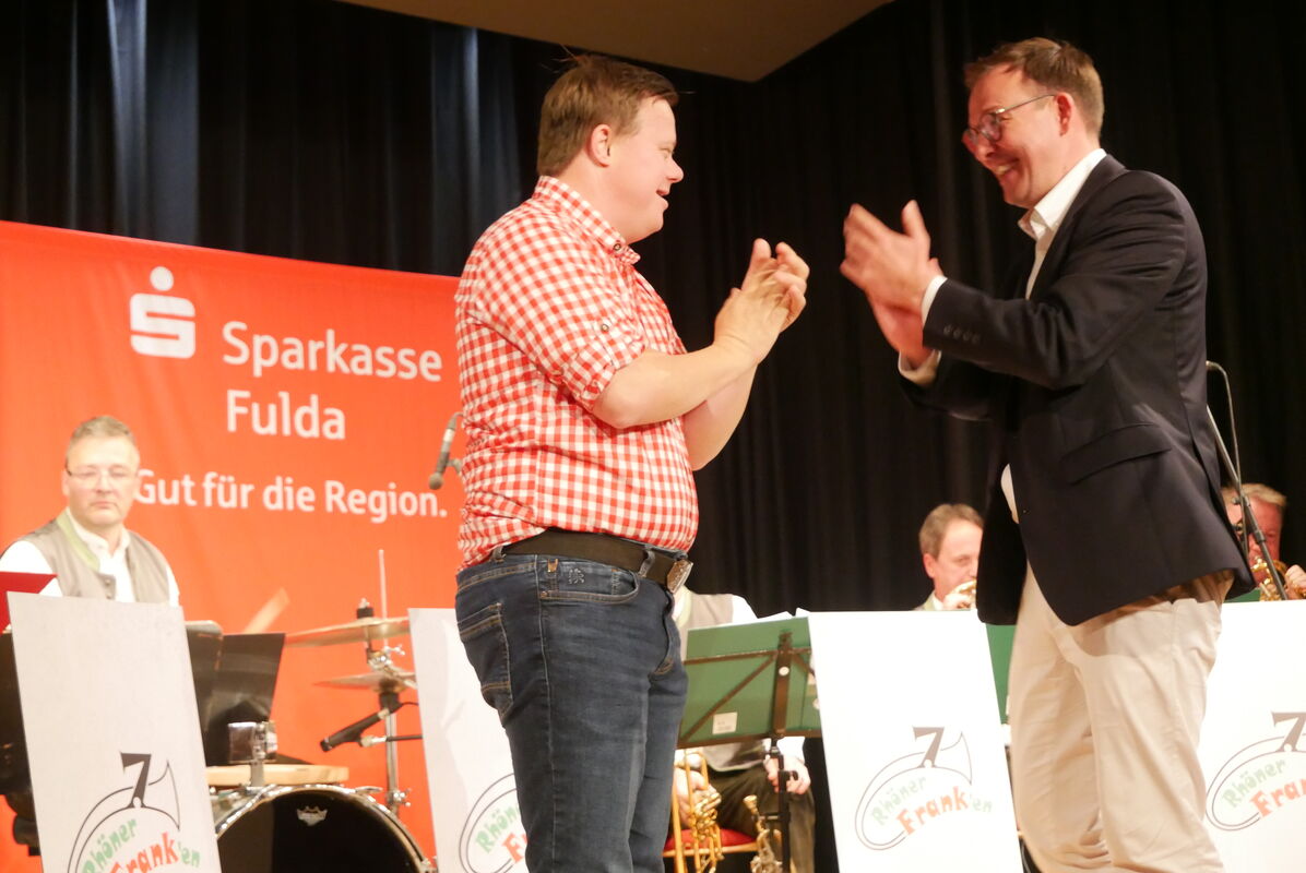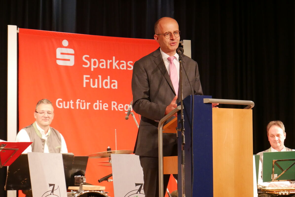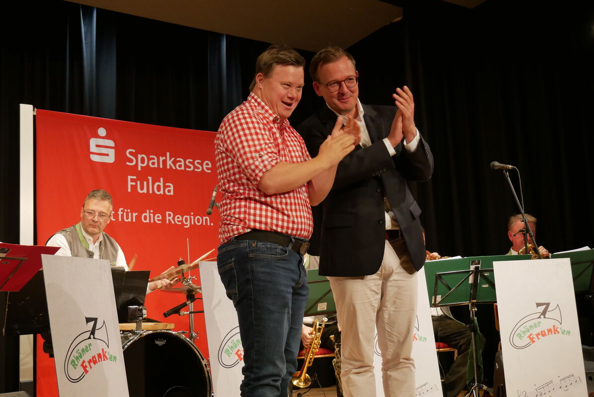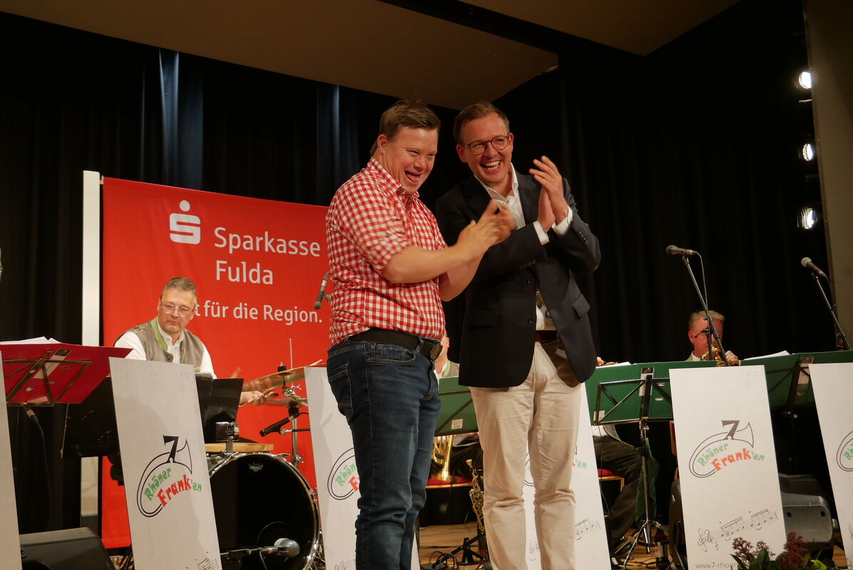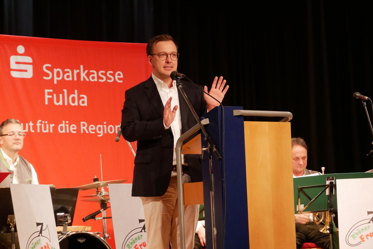 Umso mehr freute sich Eichenzells Bürgermeister daher auch, dass der parlamentarische Staatssekretär Michael Brand direkt aus Berlin in die Eichenzeller Kulturscheune gekommen war – und es sich nicht nehmen ließ, auch ein paar Worte an die Besucher zu richten. „In unserer Region liegt die Stärke in den Kommunen: Denn nicht nur heute Abend gibt es schöne Töne, auch in Eichenzell läuft eine ganze Menge in die richtige Richtung“, führte der Bundestagsabgeordnete aus: „Es wird gebaut, es geht mit der Infrastruktur voran. Die Perspektive ist gut – und entscheidend dafür ist der Zusammenhalt. Einer achtet auf den anderen, die soziale Bindung und das Engagement in den Vereinen ist großartig.“ Sebastian Müller, Mitglied des hessischen Landtages, schloss sich Brand in seinen Grußworten an, bevor die „7 Rhöner Franken“ übernahmen: „Ohne diese ehrenamtlichen Akteure wäre das alles nicht möglich. Die Region ist lebenswert und die Musik trägt dazu einen ganz großen Anteil bei. Die Lebensqualität hier ist ganz besonders hoch. Wir leben gerne hier“, betonte Müller, der zu guter Letzt allerdings warnte: „Wir müssen weiter daran arbeiten, die Verfahren zu verbessern, um den Vereinen die benötigten Mittel so schnell wie möglich zur Verfügung stellen zu können. Darauf muss der Fokus in der Zukunft liegen.“