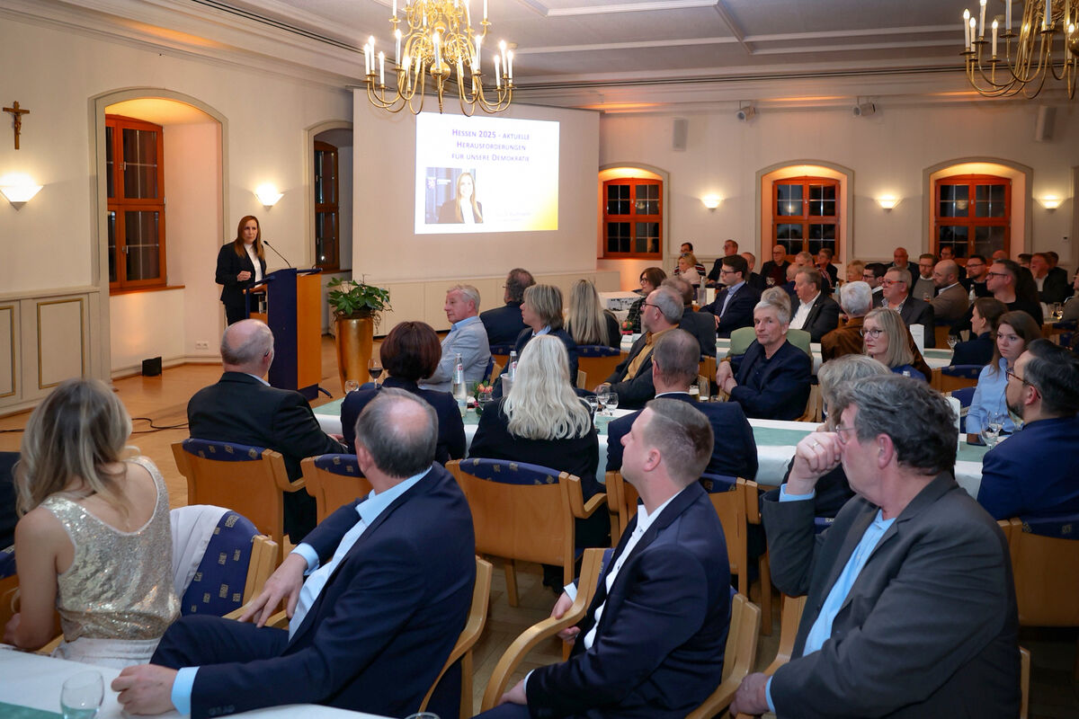 Die hessische Landtagspräsidentin Astrid Wallmann warnte in ihrem Impulsvortrag "Aktuelle Herausforderungen für unsere Demokratie" nicht nur vor der globalen Auseinandersetzung zwischen weltanschaulichen Systemen, die durch die Wiederwahl von Donald Trump an Aktualität gewonnen habe, sondern auch vor der Gefahr für die Demokratie auf kommunaler Ebene: Bürgermeister würden inzwischen bedroht und beleidigt - die Politik müsse mit aller Härte gegen solche Taten vorgehen.