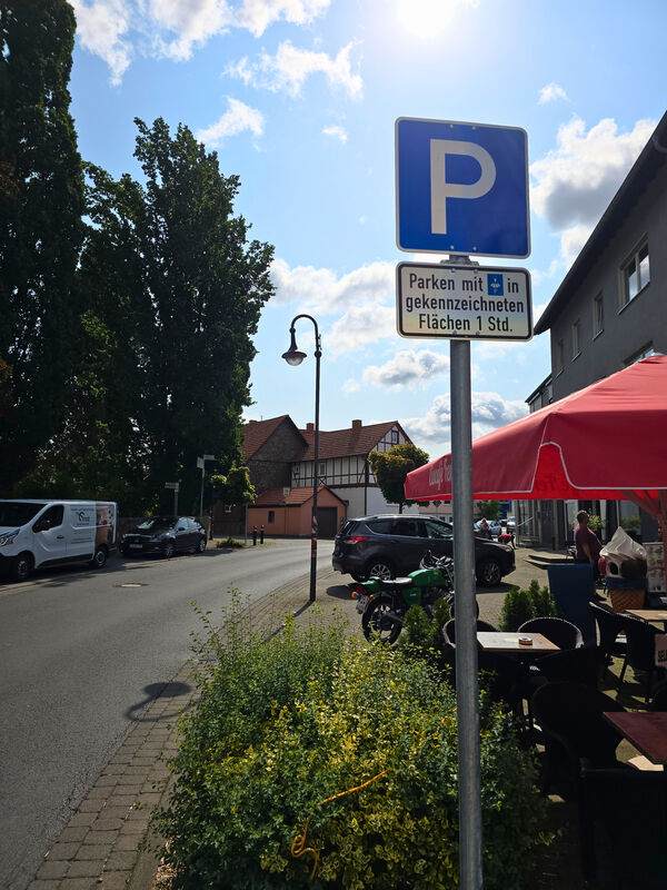 Bitte beachten Sie, dass das Parken in diesem Bereich nur mit Parkscheibe und für eine maximale Dauer von einer Stunde gestattet ist.