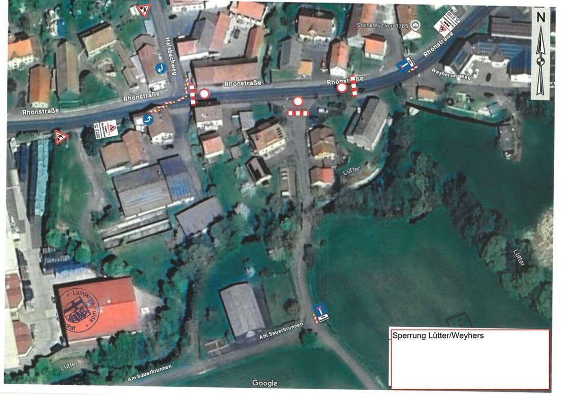 Im Zuge der Kanalbaumaßnahme für den Anschluss der Kläranlage Weyhers an die Kläranlage Löschenrod wird die Rhönstraße (L3307) im Bereich Ortsausgang Lütter/Weyherser Weg bis Halsbachweg voll gesperrt.