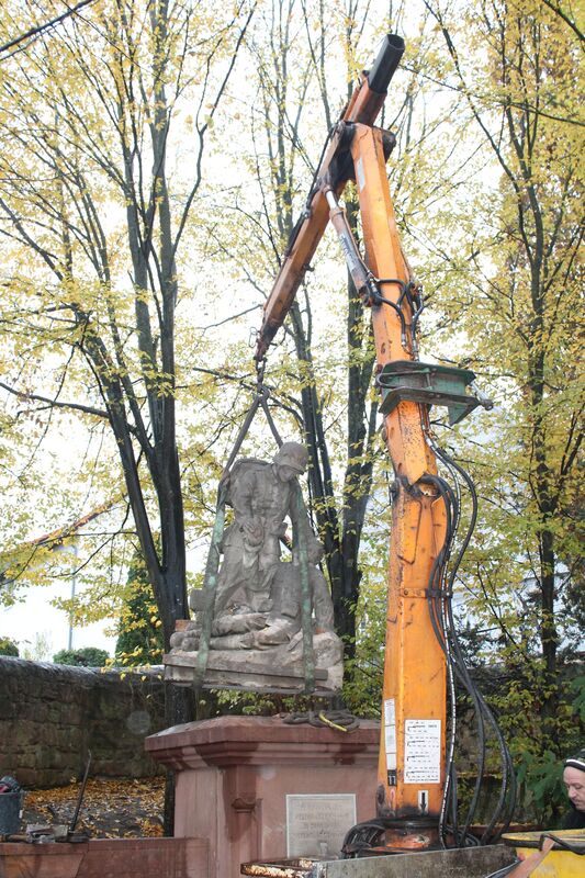 Pünktlich zu der Gedenkfeier am Volkstrauertag ist es durch die sehr gute Zusammenarbeit mit der Fachfirma Hartmann & Sohn aus Bachrain, dem gemeindlichen Bauhof und dem Architekturbüro Krieg+Warth gelungen, dass Ehrenmal in Gänze auf dem neuen Standort am alten Friedhof aufzustellen.