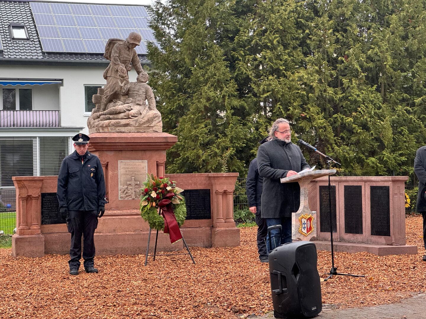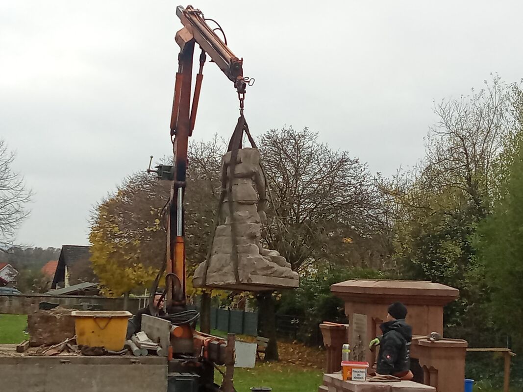 In den Tagen vor dem diesjährigen Volkstrauertag wurde in schneller Folge zunächst am alten Friedhof die marode Leichenhalle abgetragen, das Fundament für das Ehrenmal gegossen und bis zur sprichwörtlich letzten Minute am Ehrenmal selbst gearbeitet.