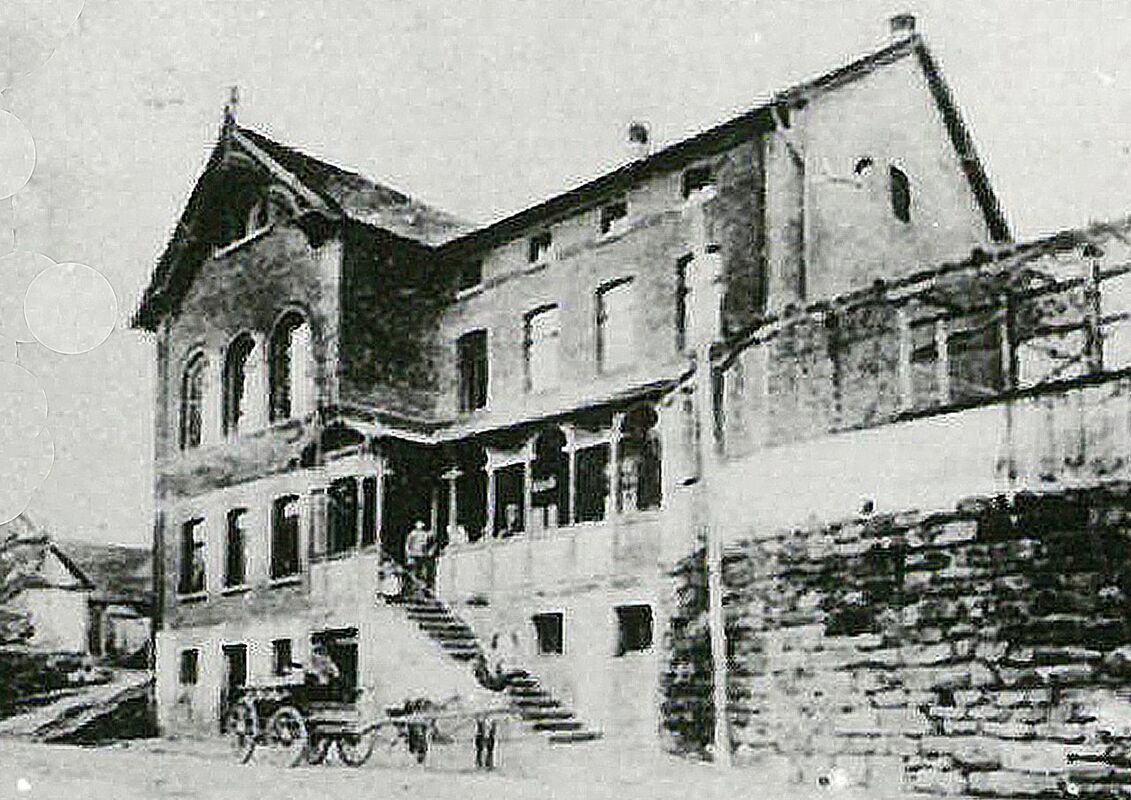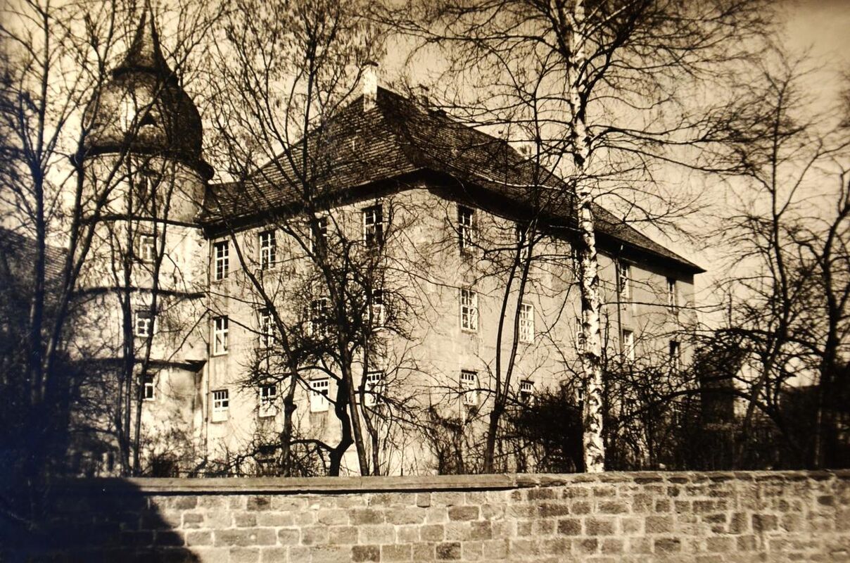 Alte Aufnahme des ehemaligen Burgsitz von 1901, mit Lehrer Zentgraf davor.
