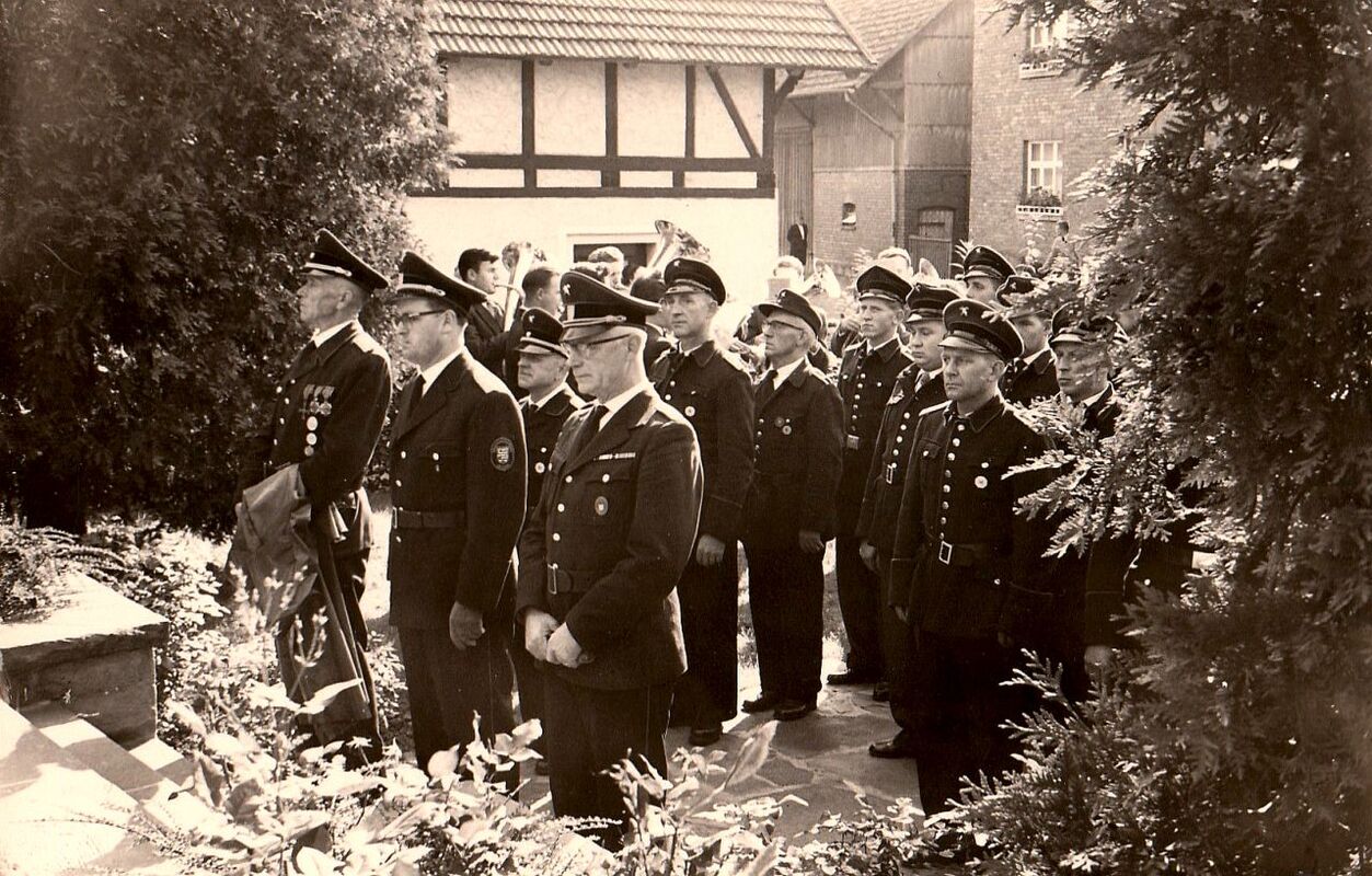 Totensonntag. Kranzniederlegung durch die Ffw. Eichenzell am Kriegerdenkmal, das im Pfarr- bzw. im Schulgarten unterhalb der Kirche seinen Platz hatte. Es wurde dann Ende der 60er in den Schlossgarten versetzt.