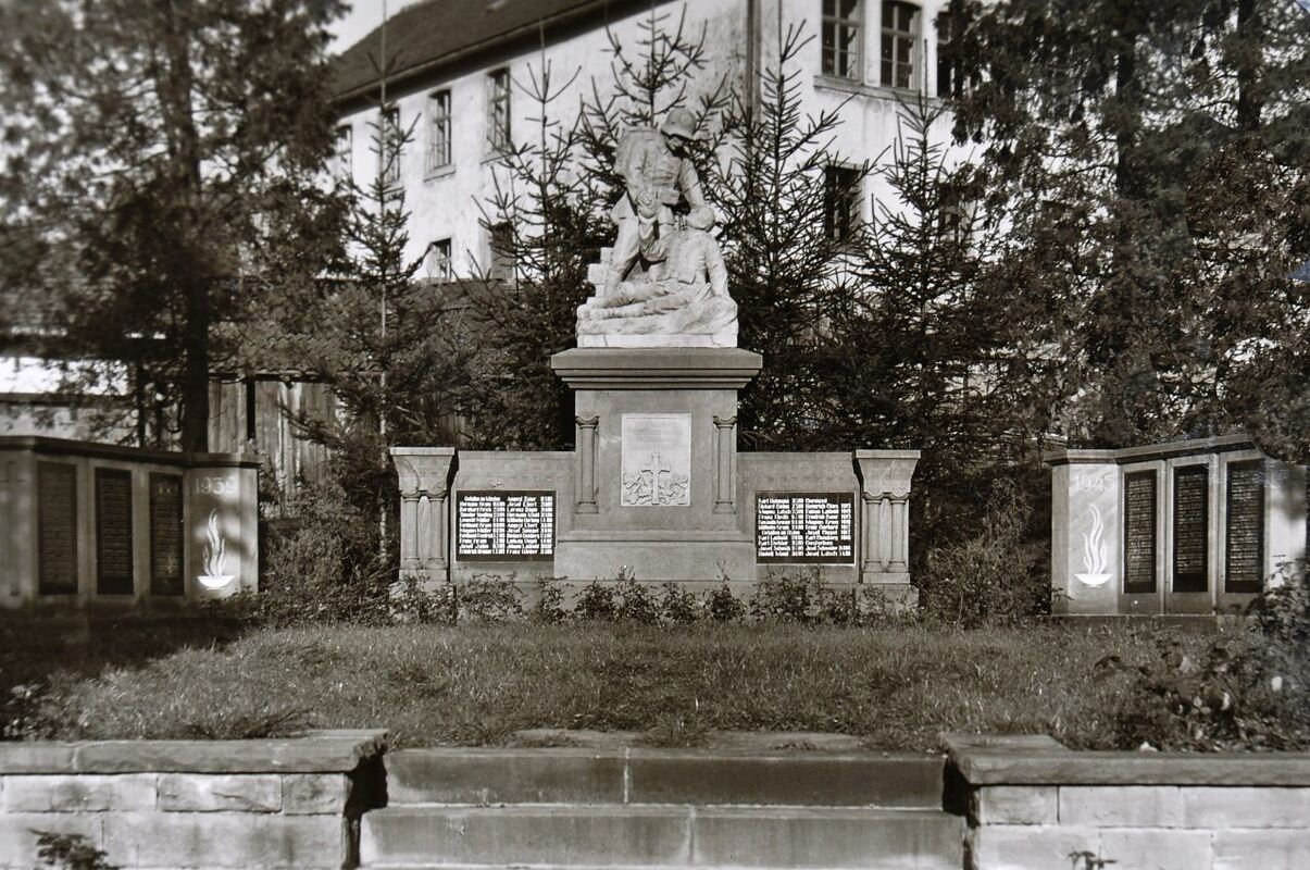Das Kriegerdenkmal in der Ortsmitte. Auf dem nächsten Foto sehen wir das ganze Dorf – auch die „Großkopferten“ – bei der Einweihung des Ehren- und Mahnmals, unterhalb von Kirche und alter Schule. Wir schreiben das Jahr 1922.