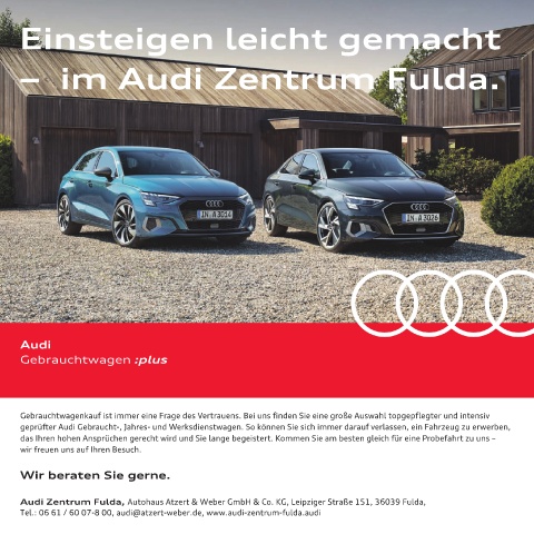 Tel.: 06 61 / 60 07-8 00, audi@atzert-weber.de, www.audi-zentrum-fulda.audi