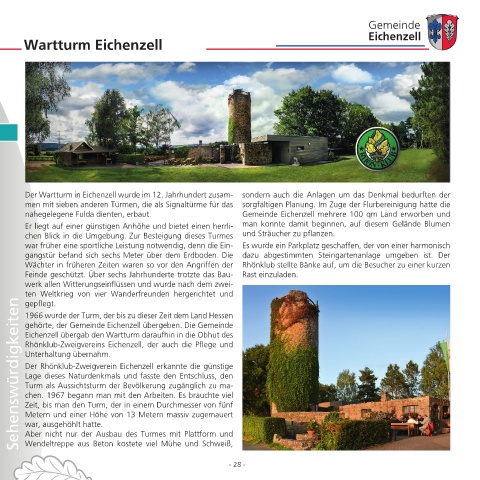 Der Wartturm in Eichenzell wurde im 12. Jahrhundert zusam- sondern auch die Anlagen um das Denkmal bedurften der