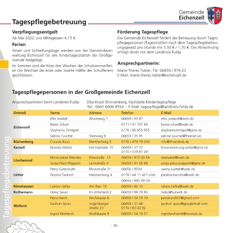 Tagespflegepersonen in der Großgemeinde Eichenzell