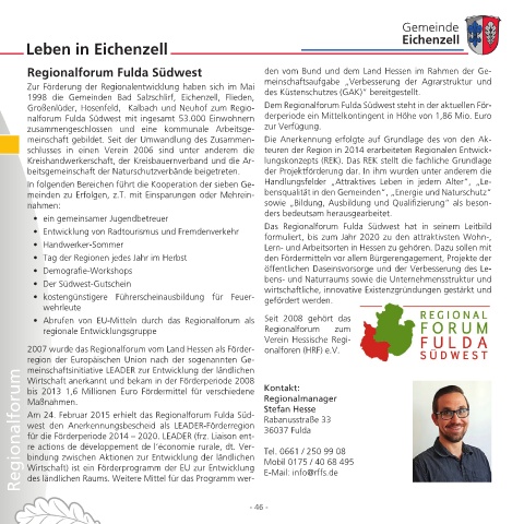 Großenlüder, Hosenfeld, Kalbach und Neuhof zum Regio- Dem Regionalforum Fulda Südwest steht in der aktuellen För-