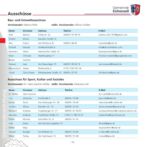 Klimesch Andreas Vogelsberger Str. 51 06659 / 61 98 82 andreas.klimesch@ortsbeirat-welkers.de