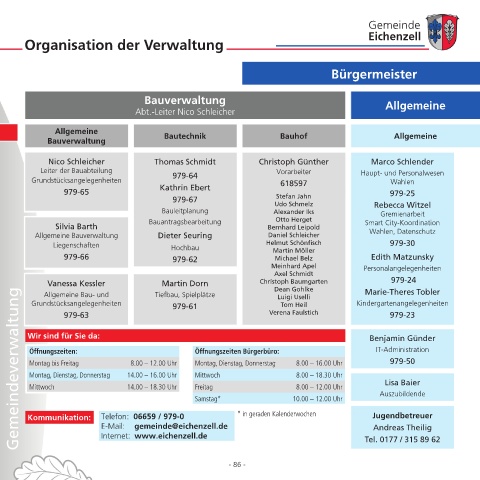 Öffnungszeiten: Öffnungszeiten Bürgerbüro: IT-Administration