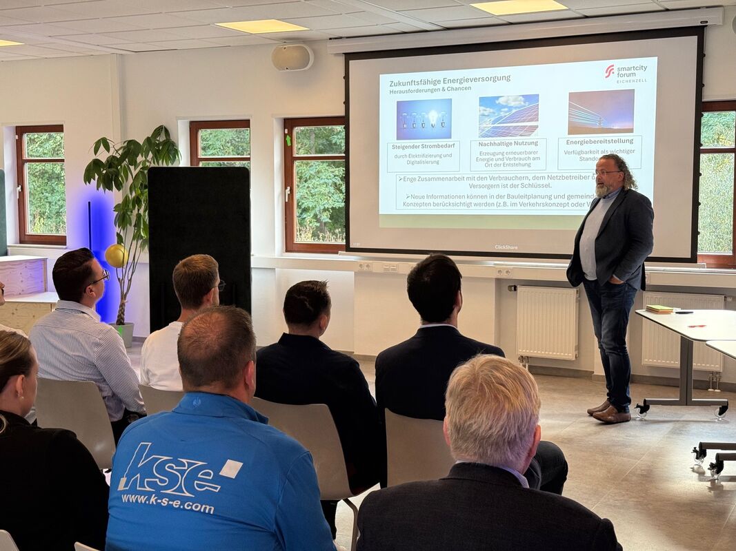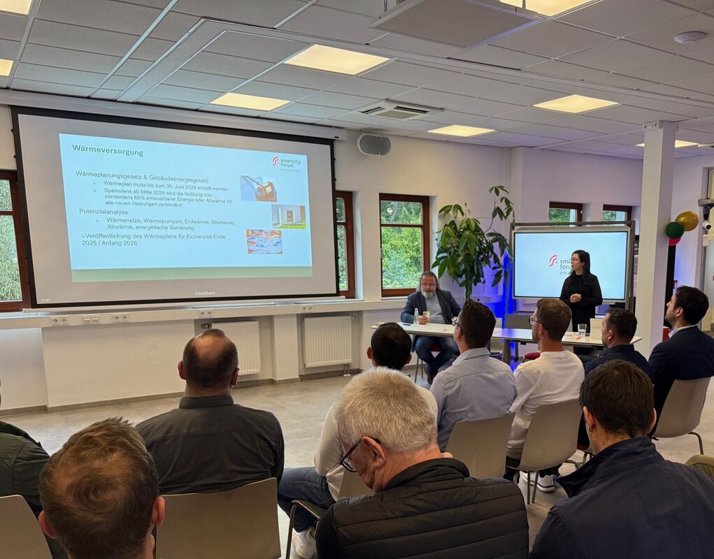 Am Donnerstagabend, den 9. Oktober 2025, fand das erste Eichenzeller Zukunftsforum Energie im Smart City Forum statt. Geladen waren Gäste aus ortsansässigen Unternehmen, lokale Versorger und Projektierer. Der Hintergrund dieses Forums ist die Erstellung verschiedener gemeindeeigener Konzepte, in denen die Interessen von Vertretern aus Industrie und Gewerbe entsprechend integriert werden sollen. Ziel des Forums ist es, aus bestehenden Herausforderungen Chancen abzuleiten und gemeinsam Projekte zu identifizieren, um in Zusammenarbeit mit lokalen Versorgern und dem Netzbetreiber die Energieversorgung zukunftsfähig aufzustellen.
